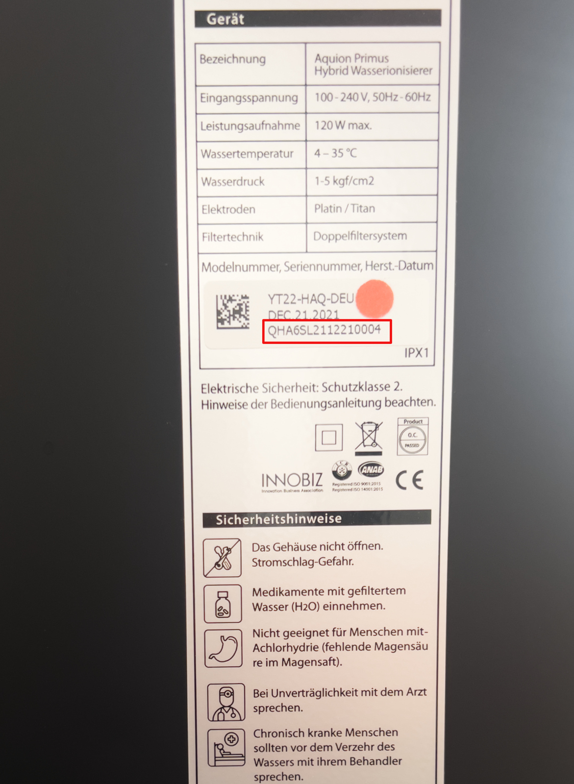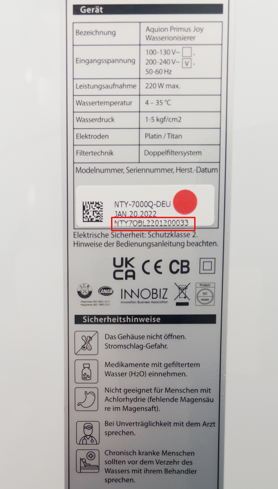 Um Ihr Anliegen bestmöglich bearbeiten zu können, benötigen wir die Seriennummer Ihres Aquion. Diese unterstützt uns bei der gezielten Lösungsfindung.