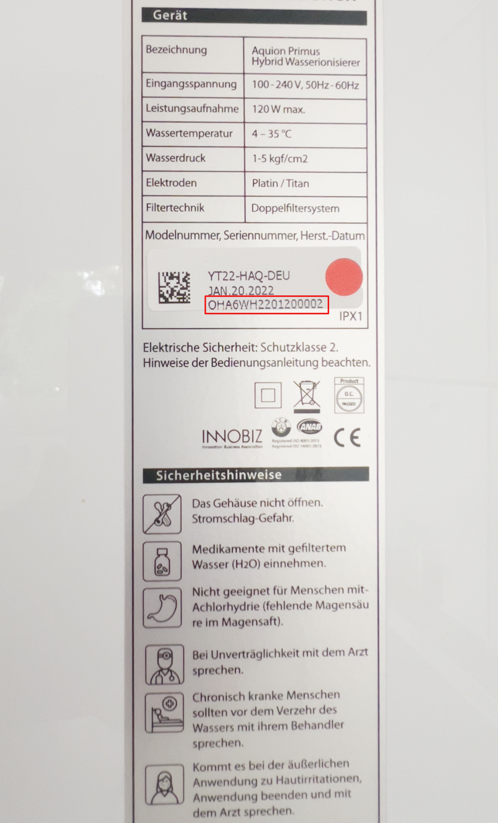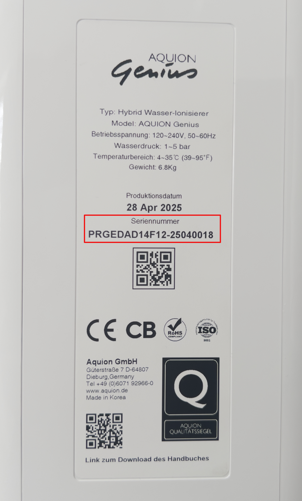 Um Ihr Anliegen bestmöglich bearbeiten zu können, benötigen wir die Seriennummer Ihres Aquion. Diese unterstützt uns bei der gezielten Lösungsfindung.