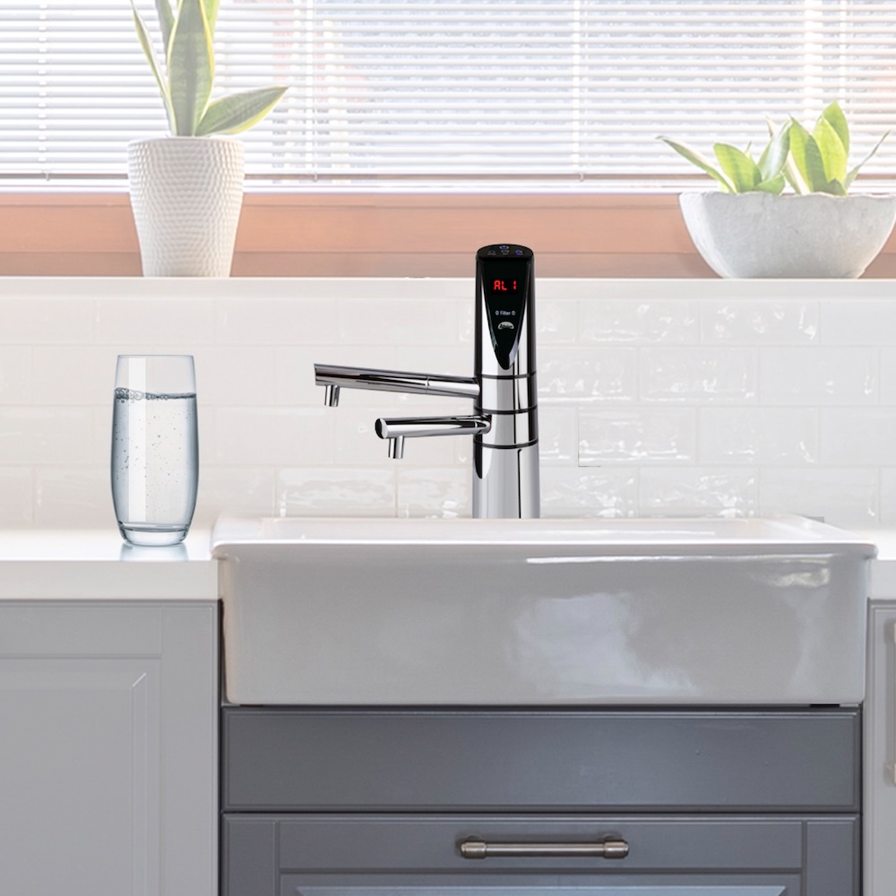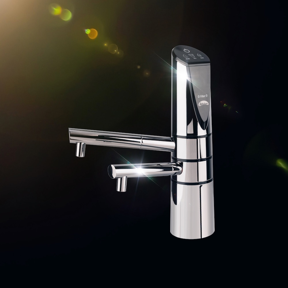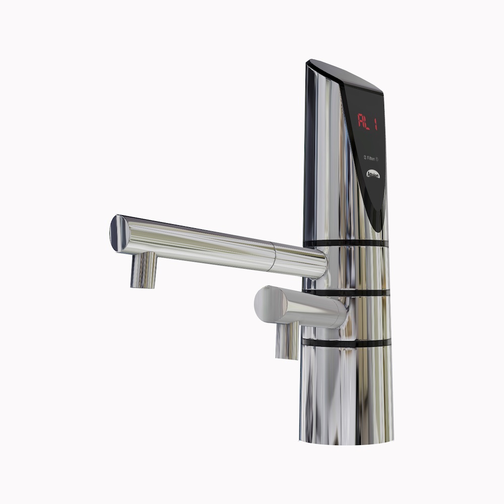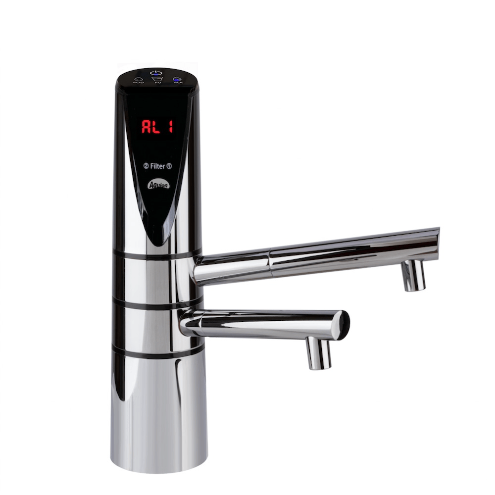 Die Design-Armatur dient der Steuerung des Premium 5000 und perfektioniert dessen Handhabung, wenn er (als 5000-U) als Untertischgerät eingesetzt wird. Daher ist sie im Lieferung des Premium 5000-U enthalten. Für den Fall, dass ein Premium 5000 nachträglich unter der Spüle installiert wird, ist die Design-Armatur separat erhältlich. Sie wird mit einem Flexschlauch mit dem Gerät verbunden. Hinweis: Die Design Armatur ist nicht mit anderen AquionWassersystemen kompatibel.